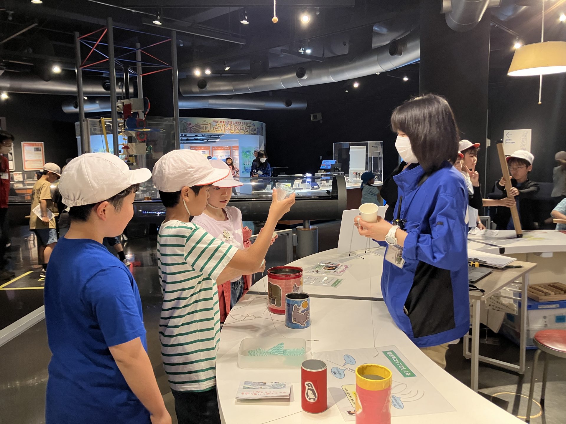 プラネタリウムに続いて、様々な実験や自然の秘密を学ぶコーナーでは、班行動で興味津々の体験。スタッフの皆さんにも優しく教えてもらい、学びを深めることができました。