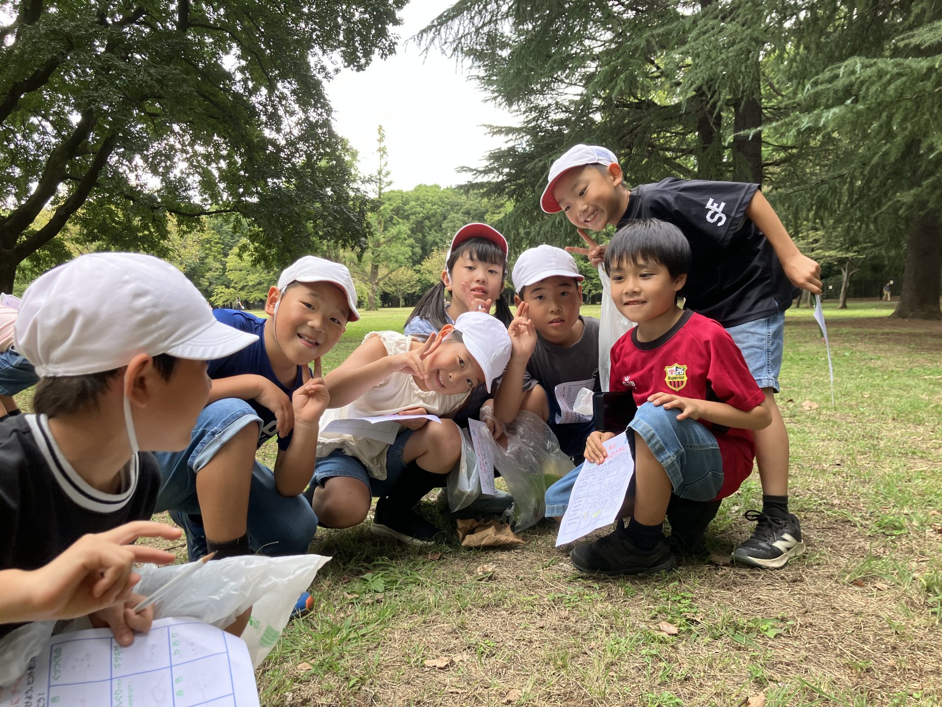 お弁当の後は、秋探しの学習をしました。生活科で事前に書いたワークシートを見ながら、秋のビンゴにチャレンジしました。広い小金井公園の中を散策しながら、友達と一緒にたくさんの秋を探しました。どんぐりや色が変わった葉っぱなど、たくさんの秋を見つけることができ、楽しく学習を終えました。