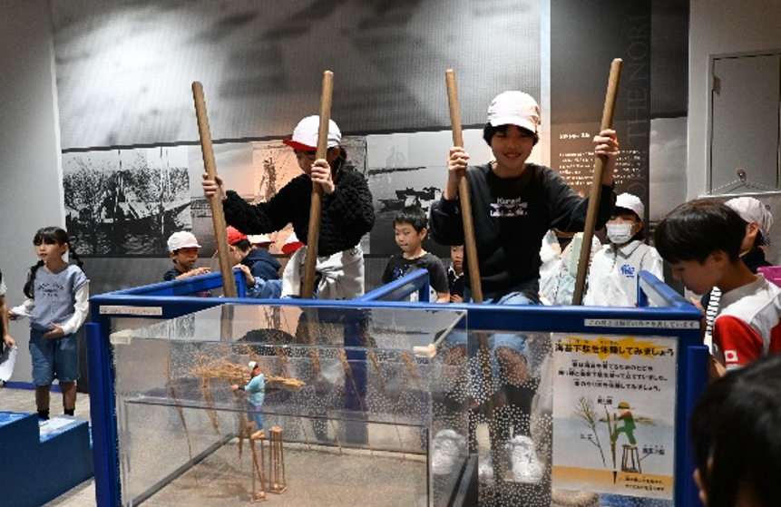 午後に訪問した「海苔のふるさと館」では、実際に使われていた海苔の船など具体物の展示に大いに刺激を受けながら、大田の海苔づくりを学ぶことができました。創立者の少年時代、また歴史ある東京の産業などに思いをめぐらせた時間となりました。